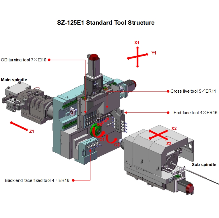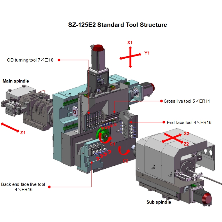 2.*4×ER16: Standard 2 live and 2 fixed tool holder (Option: 4 live tool holder)