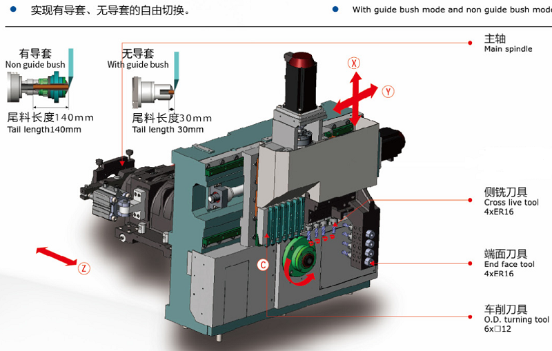 ●兼并走心和走刀(有導套模式和無導套模式)兩種加工模式,切換簡便。