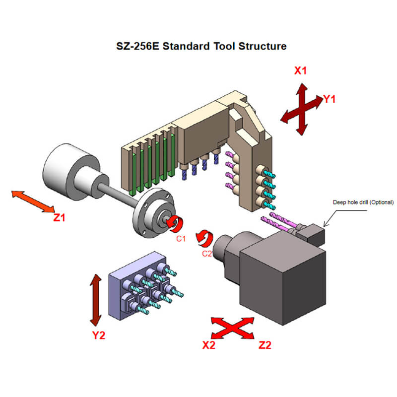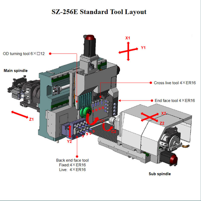 2.*4×ER16: Standard 2 live and 2 fixed tool holder (Option: 4 live tool holder)