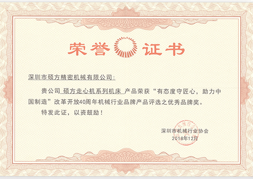 熱烈慶祝碩方走心機系列機床榮獲改革開放40周年深圳機械行業(yè)“優(yōu)秀品牌獎”