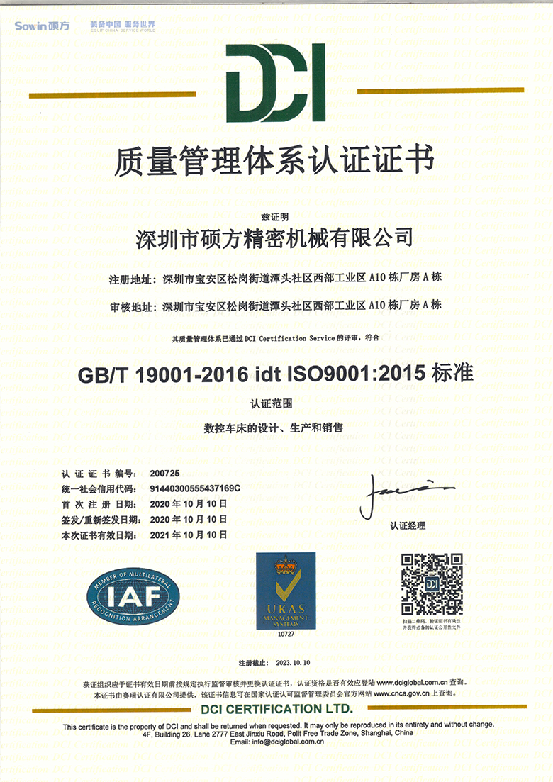 2020年10月10日,我司順利取得了GB/T 19001-2016 idt ISO9001:2015版質(zhì)量管理體系認證證書。這是第三方認證機構(gòu)對我公司質(zhì)量管理體系持續(xù)有效運行的認可,標志著碩方公司在各項管理系統(tǒng)整合上已經(jīng)達到了國際標準,步入規(guī)范化、標準化、科學化的現(xiàn)代企業(yè)管理軌道。